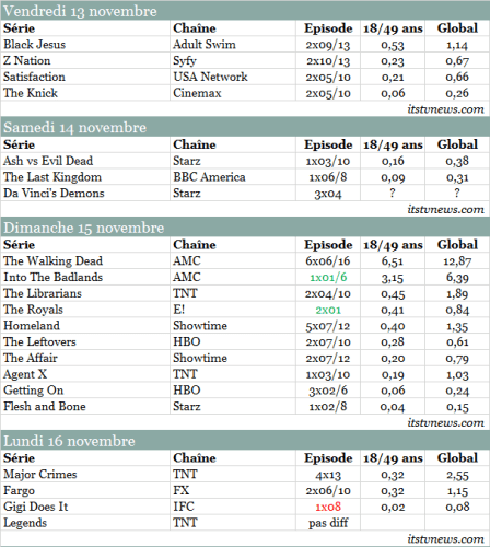Publié 18/11/2015 - 11:21 à 606 × 677 dans Audiences câble US du vendredi 13 au lundi 16 novembre : The Walking Dead propulse Into The Badlands au top‘cable-181115’ ‹ Retour